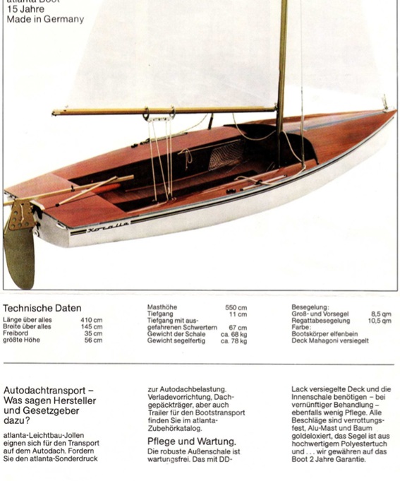 Dachträger für Regenrinnenmontage und zerlegbares Gestell zum alleinigen Aufladen sollten auch noch vorhanden sein. Durch die Seitenschwerter ist viel Platz im Boot. Wir haben das Boot bis zum Umstieg auf 470er im Jahr 1976 gesegelt.